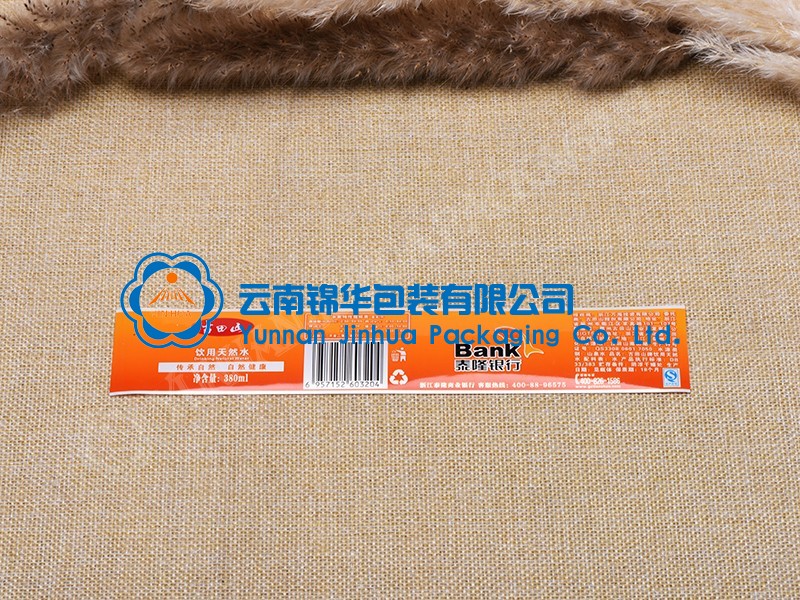 普通薄膜标签一般为PE,BOPP类薄膜兴义不干胶(背面有涂胶水),用柔印,凸印,丝印,胶印都可以,表面加防水光油保护;用贴标机贴上既可。